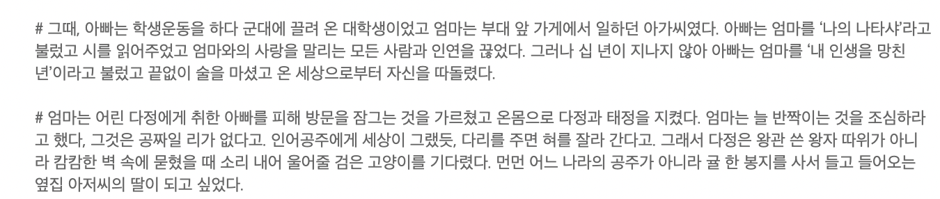 그만 잠들고 싶었을 일곱 살의 나를 나는 몇 번이나 흔들어 깨운걸까