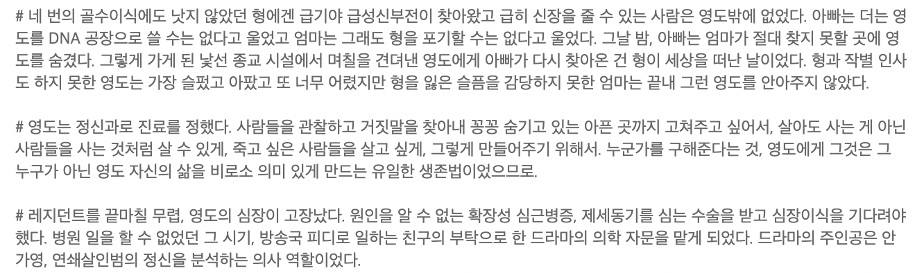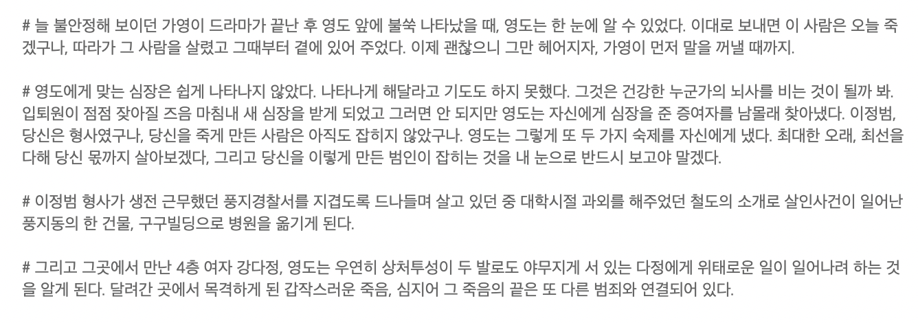 • 내용 - 저마다아의 일곱살을 가슴에 품을 채 '어른'이라는 이름을 살아가는 이들이 살인사건이 일어나게 되어 건물에 모이게 되면서 시작되는 이야기입니다.