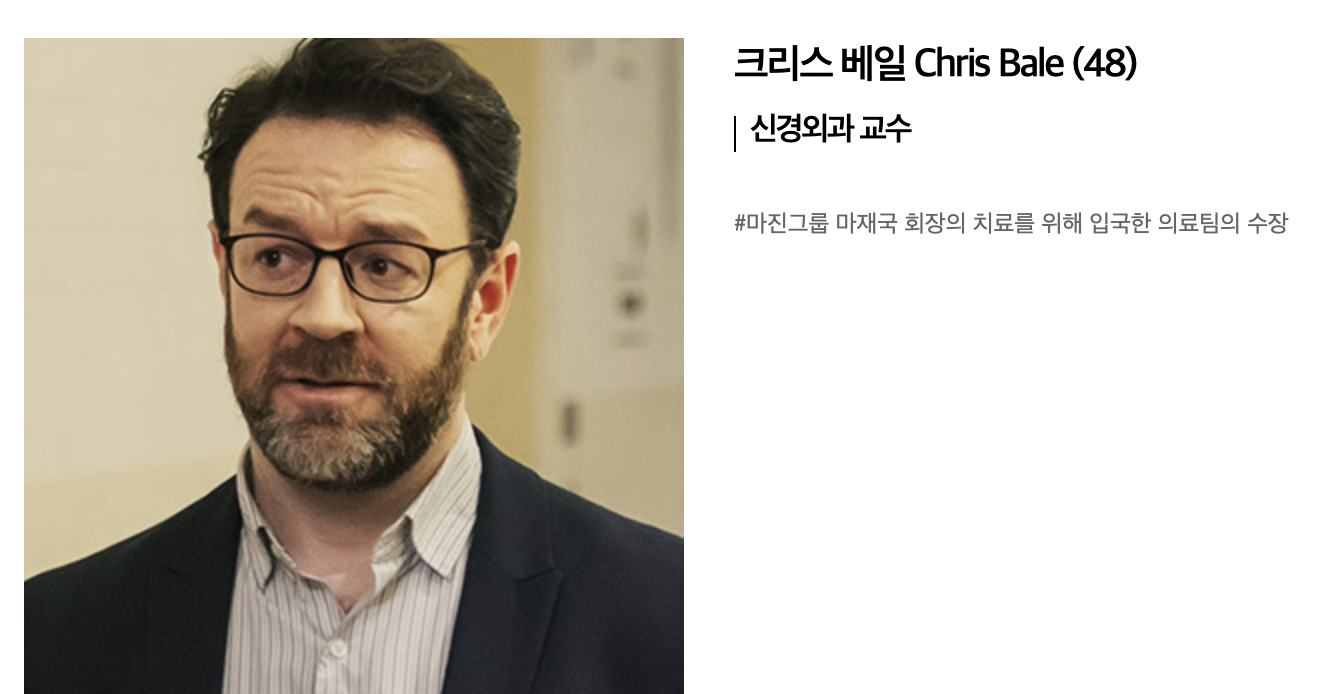 # 마진그룹 마재국 회장의 치료를 위해 닥터 베일의 팀에 합류하게 된 한국계 미국인 의