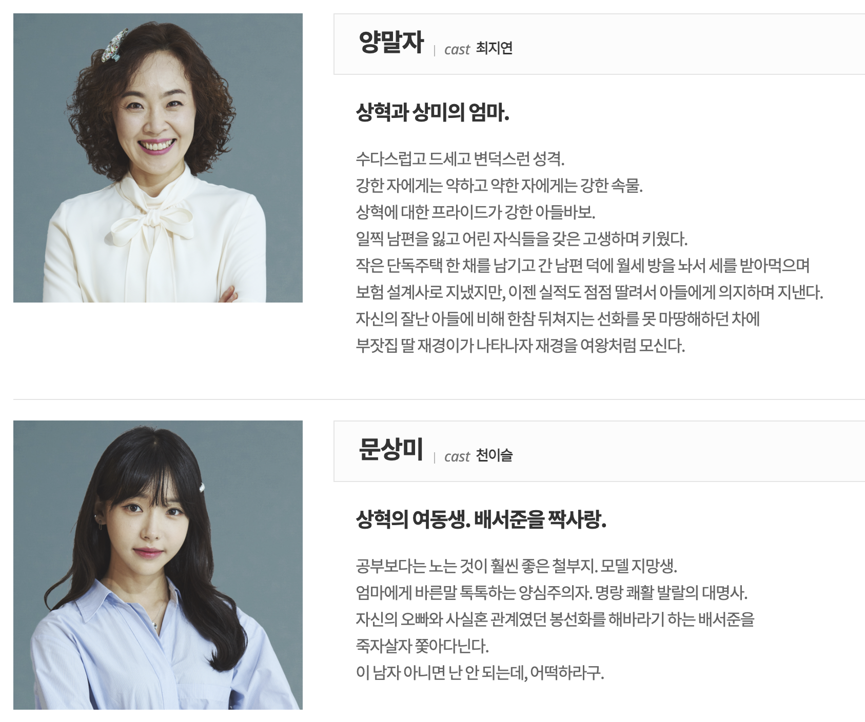 두번째 남편 등장인물