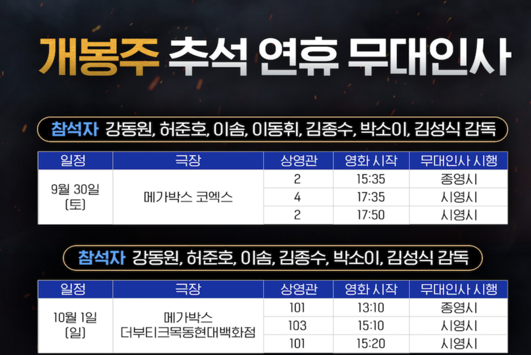 | 가문의 영광: 리턴즈 무대인사, 줄거리, 예고편 정리 (0) | 2023.09.21 |