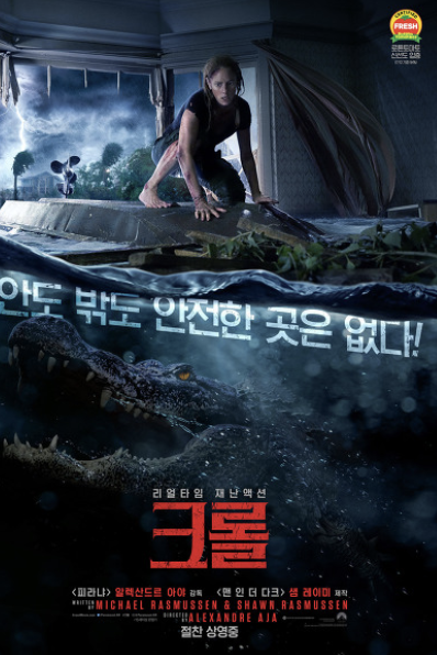 강력한 허리케인으로 인해 플로리다가 홍수로 침몰하면서 등장하는 악어와의 사투를 그린 작품입니다. 주인공 헤일리가 아버지를 찾는 도중 악어와의 생존을 건 전투에 맞서는 이야기입니다.