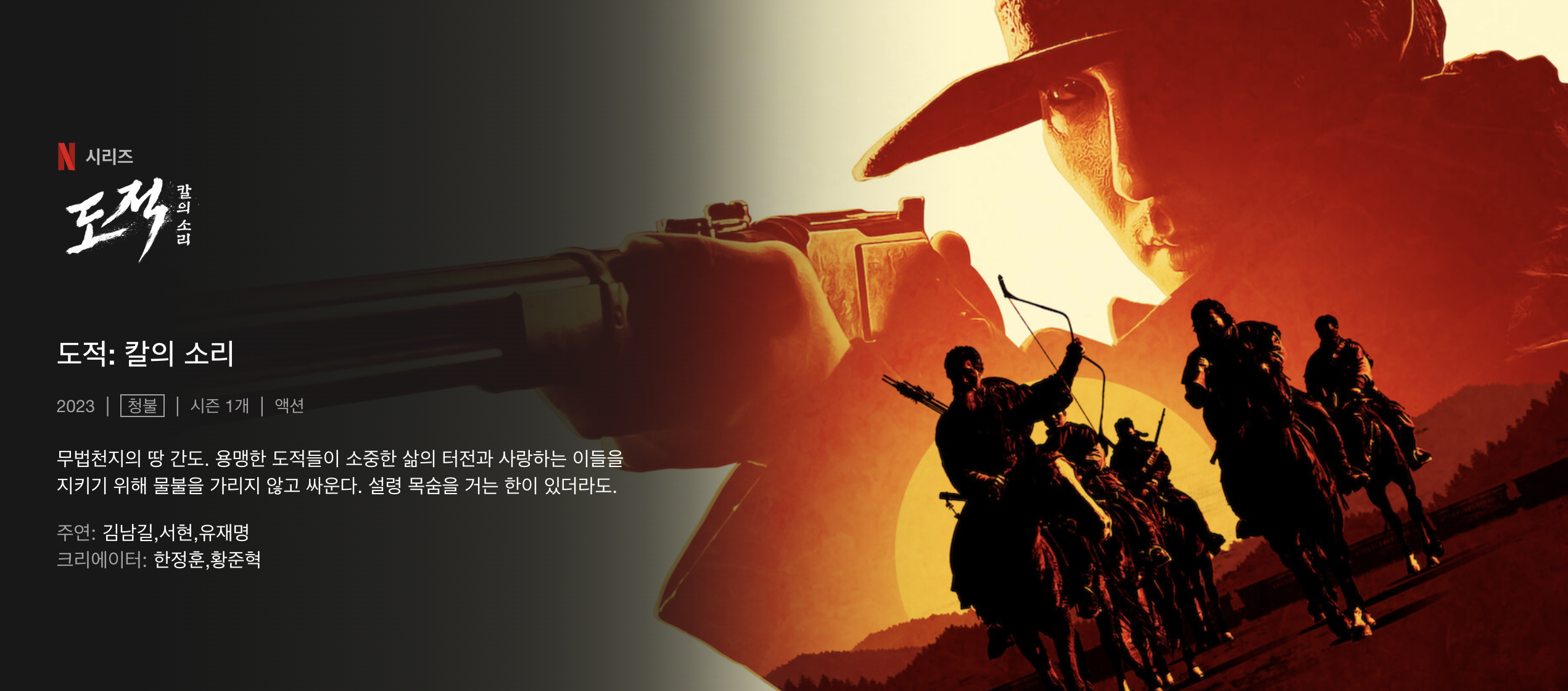 넷플릭스 드라마 추천 도적 칼의 소리 줄거리: 무법천지의 땅 간도. 용맹한 도적들이 소중한 삶의 터전과 사랑하는 이들을 지키기 위해 물불을 가리지 않고 싸우며 목숨을 걸고 싸운다. 주연으로 김남길, 서현, 유재명이 빛나는 작품입니다.