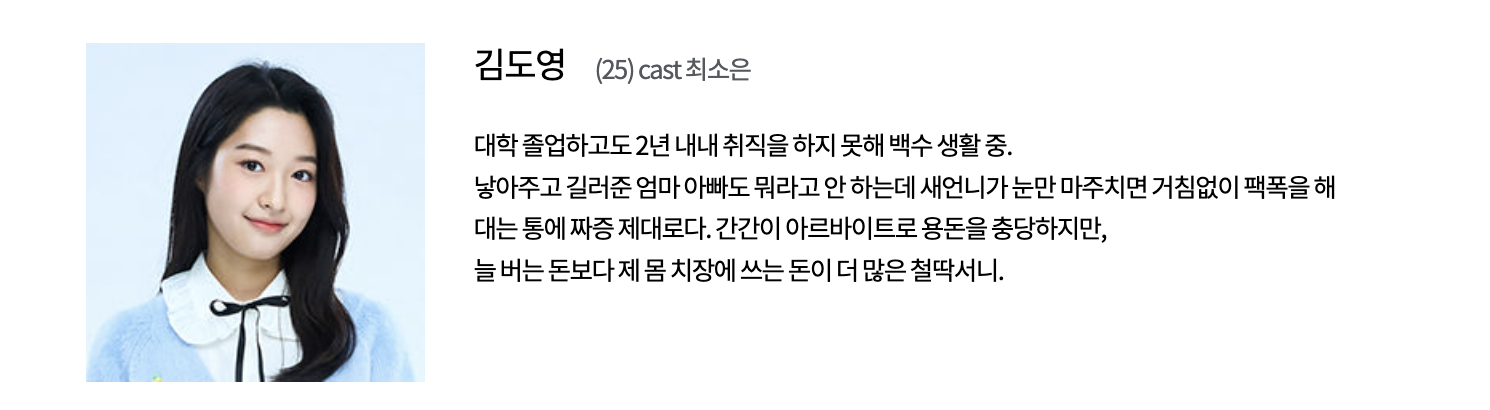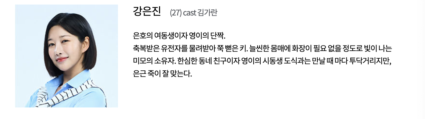 타고난 미모와 스펙을 가지고 있으며, 능력이 출중한 엄친딸인 최윤라.