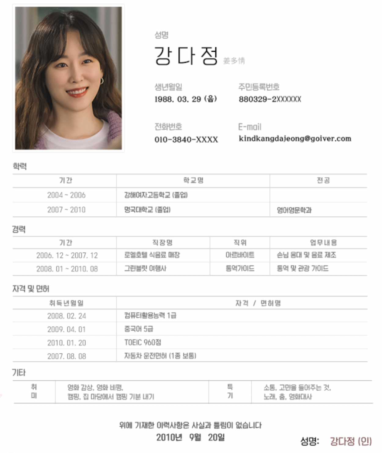 강다정 (34) / 호텔 컨시어지 매니저