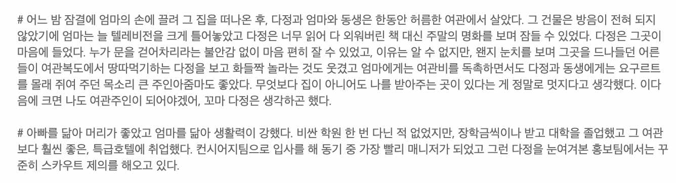 누군가의 뜻 없는 미소를 나를 향한 비웃음으로 뒤틀어 받아들이지 않으려면, 잘 지내보자고 내미는 손을 나도 모르게 순식간에 할퀴어 버리지 않으려면, 일흔이 넘어 백발이 된 머리카락으로 부모의 무덤에 찾아가서 그땐 나한테 왜 그랬냐고 울지 않으려면, 우리는 더 늦기 전에 그 어린아이를 만나야 하지 않겠냐고..