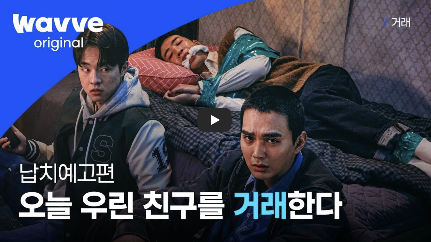 "거래"는 순간의 선택이 큰 파란을 일으키는 100억 납치 스릴러 드라마입니다. 두 명의 친구가 하나의 친구를 납치하는데 이로 인해 100억 거래까지 이어지는 이야기가 펼쳐집니다.