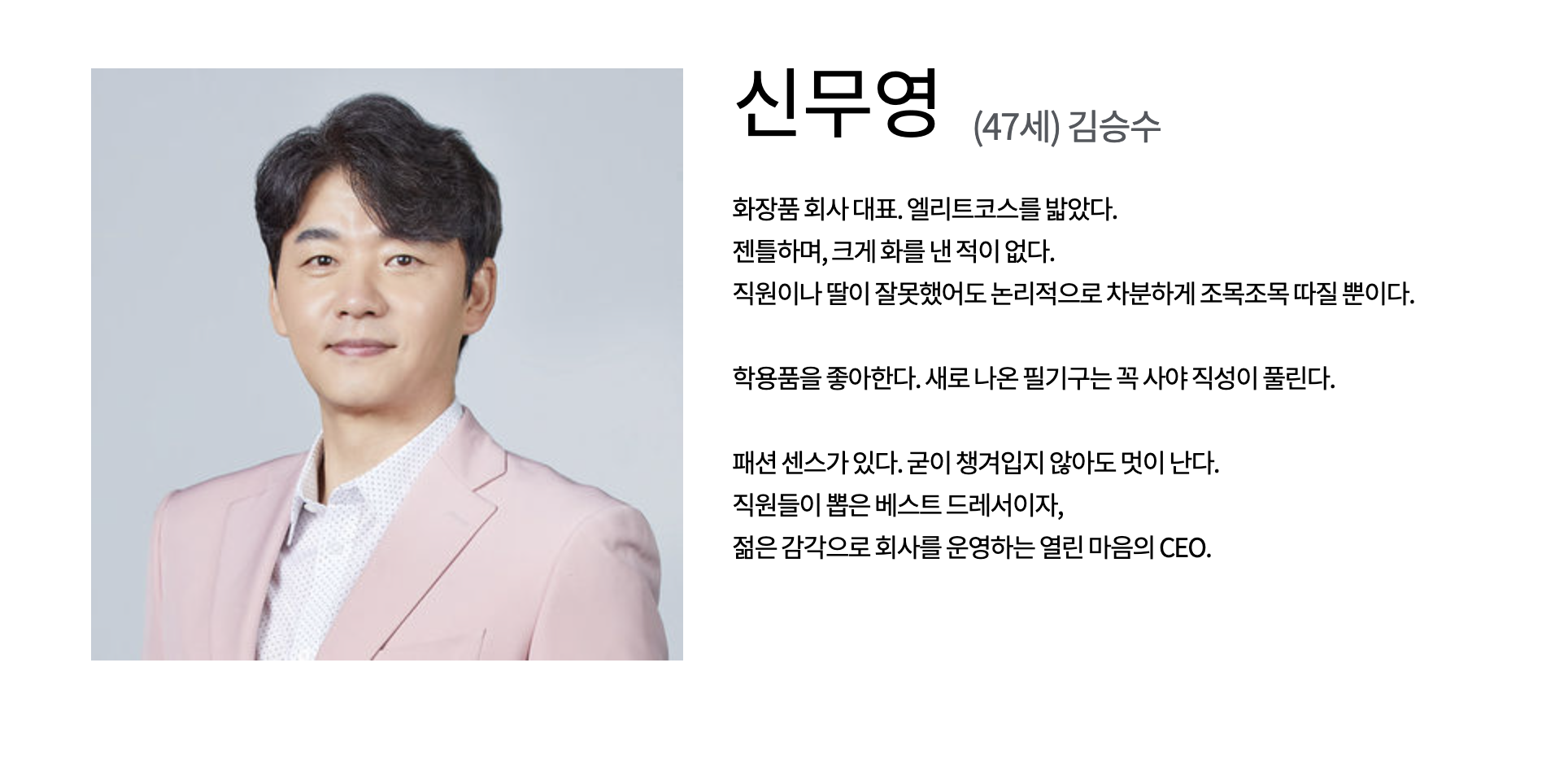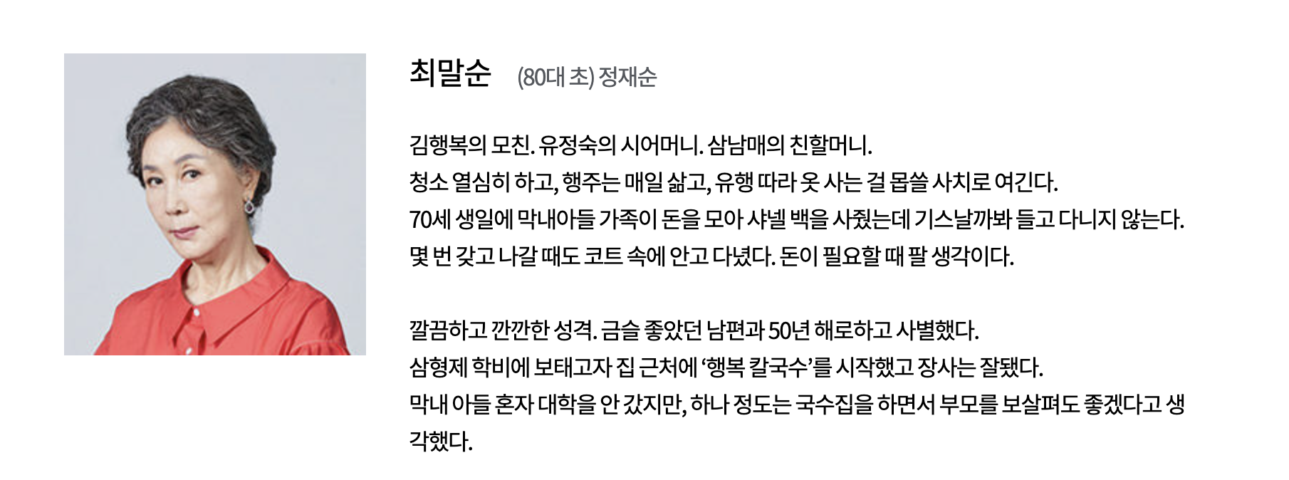 그리고 한국의 전통적 장남도 무거운 책임감을 가져간다. 부모 공양과 동생들을 건사해야 하는 처지는 같았지만, 첫아들로서 받는 특별 대우가 있습니다. 장녀가 부모를 돕는 조력자 범주라면, 장남은 부모의 권력을 나눈 자에 가까웠습니다. K-장남 이상준은 이혼하고 혼자가 된 엄마와 한 가족처럼 사는 사촌형 가족과 여동생에 대한 사랑이 남다르다.