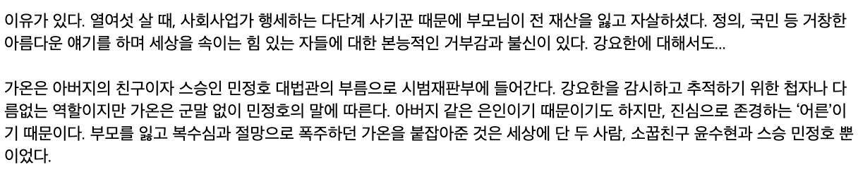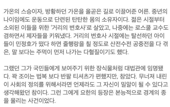 민정호[대법관] - 가온의 스승으로 나오는 사람입니다. 방황하던 가온을 좋은 길로 이끌어준 스승이자 어른.