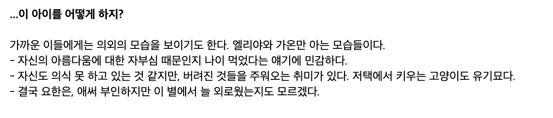 김가온의 소꿉친구로 나옵니다. 어렸을 때부터 친남매처럼 지내고 가족처럼 지내온 사이입니다. 혼자서만 가온을 좋아하고 있으며, 겉으로는 가온을 챙겨주는 부모님과 같은 역할을 합니다.
