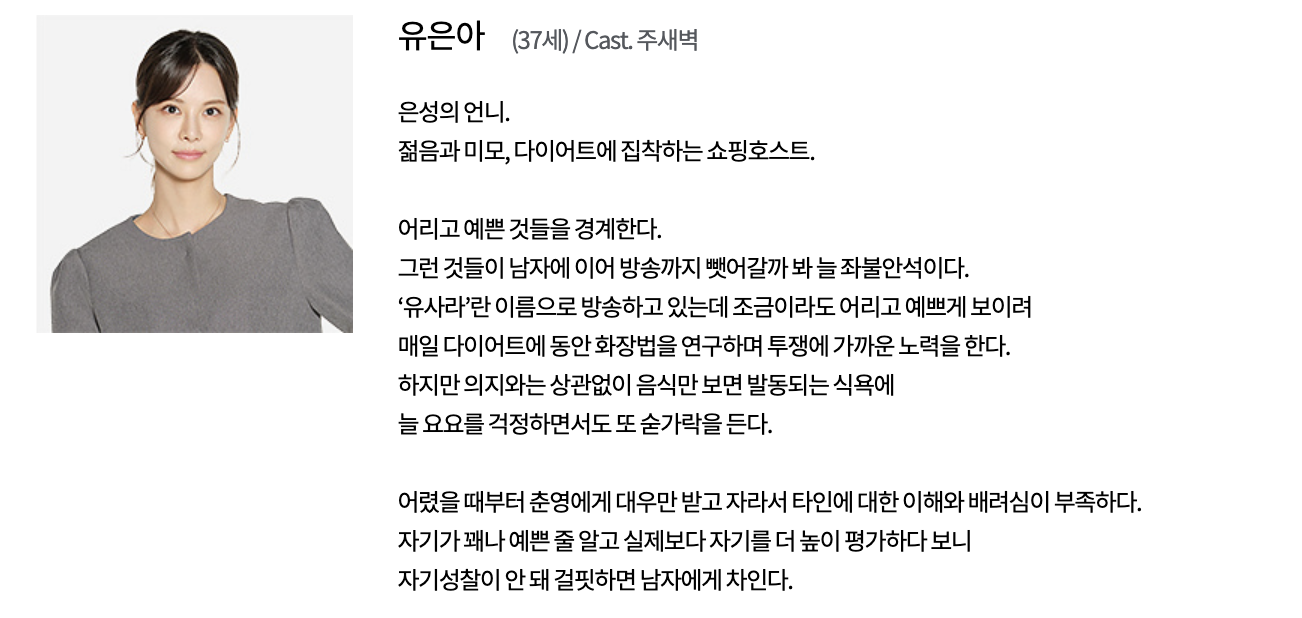 • 신하영 (이효나 역): 영화사 기획피디로 활약하는 팔색조로, 가족과의 이야기에서 성장하는 인물입니다.
