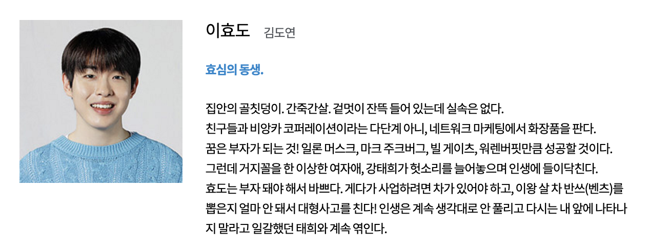 효심이네 각자도생 드라마 등장인물 출연진 이효준