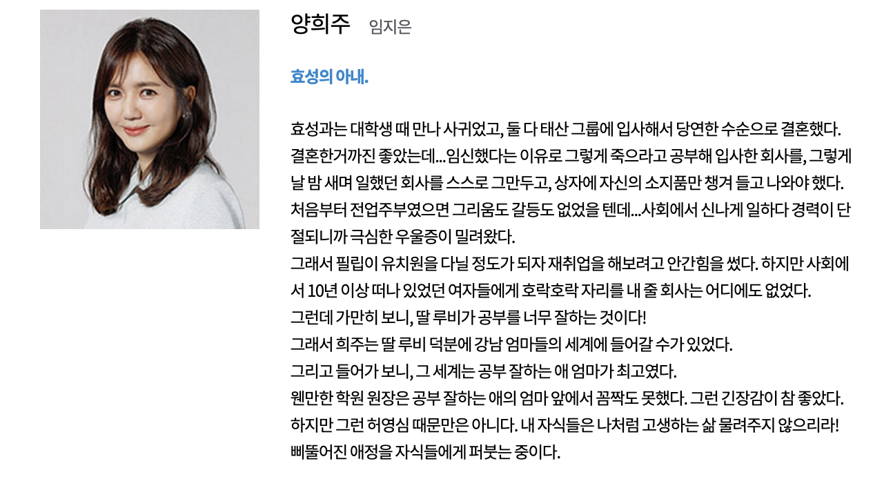 효심이네 각자도생 드라마 등장인물 출연진 양희주