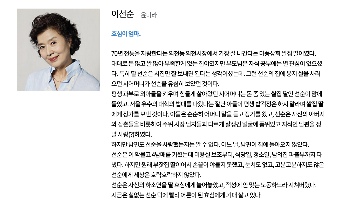 효심이네 각자도생 드라마 출연진 등장인물